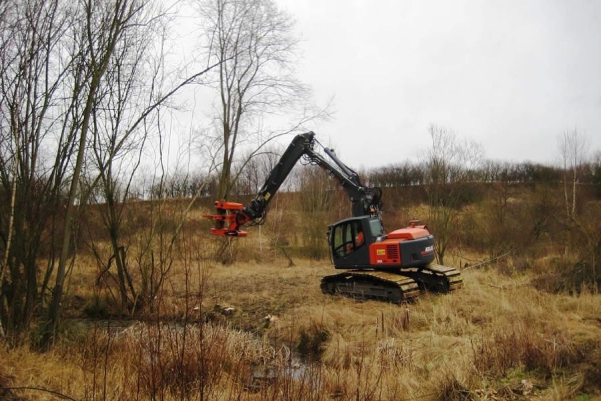 Zur Umsetzung der Maßnahmen hat der Baugeräteführer Dennis Bystrek der Firma Müller aus Ehra-Lessien zunächst rund 350 Gehölze im Bereich der Gewässer entfernt. Dazu kam ein hydraulisch angetriebener Schneidkopf („Woodcracker“) zum Einsatz. Dieser war an einem Raupenbagger mit besonders breiten Ketten und 10 Meter langem Ausleger befestigt, wodurch die schonendste Befahrung des gesamten Gebietes gewährleistet war. Nach dem Entfernen von Bäumen und Stubben wurden die Teiche und Tümpel ausgebaggert und zum Schluss auch die Ufer neu modelliert, so dass rechtzeitig zum Beginn der diesjährigen Amphibienwanderung auch Kammmolch und Knoblauchkröte sowie die häufigeren Arten Erdkröte, Grasfrosch, verschiedene Grünfrösche und weitere Molcharten von den Maßnahmen profitieren können.