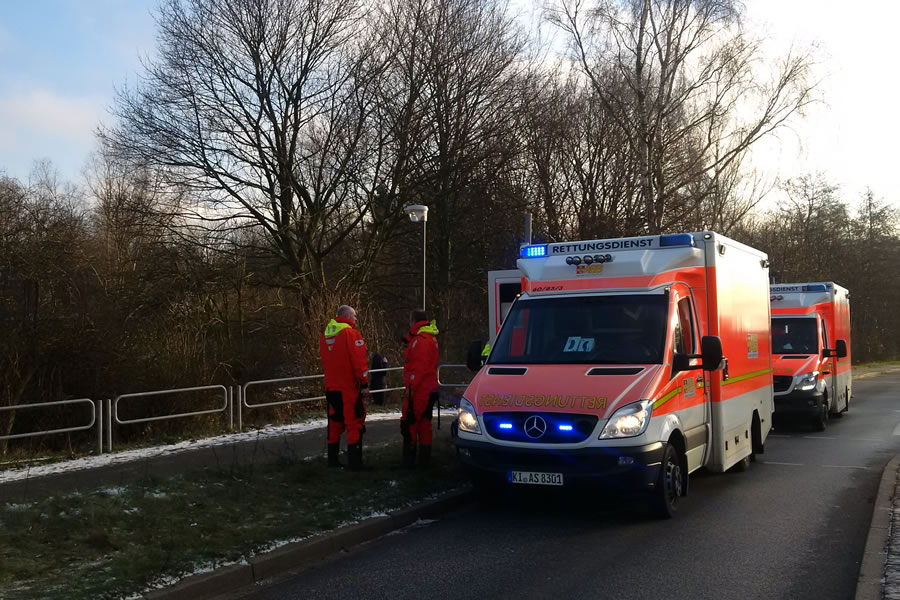 Alle drei betroffenen Schülerinnen wurden durch den Notarzt untersucht und anschließend mit Unterkühlungen in Kieler Krankenhäuser transportiert.