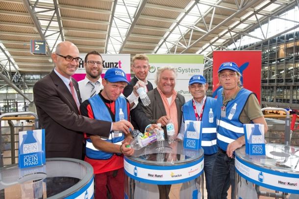 Viele hundert Pfandflaschen am Hamburger Flughafen landen jeden Tag im Müll. Vor allem vor den Sicherheitskontrollen werden sie entsorgt, weil sie nicht mit ins Flugzeug genommen werden dürfen. Jetzt hat Hamburg Airport sechs durchsichtige Behälter in den Terminals aufgestellt, damit Passagiere ihre Pfandflaschen spenden können. Aus den Erlösen finanziert das Hamburger Straßenmagazin Hinz & Kunzt die Arbeitsplätze für drei ehemalige Langzeitarbeitslose: Sie sind künftig dafür zuständig, die durchsichtigen Sammelbehälter in regelmäßigen Abständen zu leeren, das Pfandgut zu sortieren und für di…