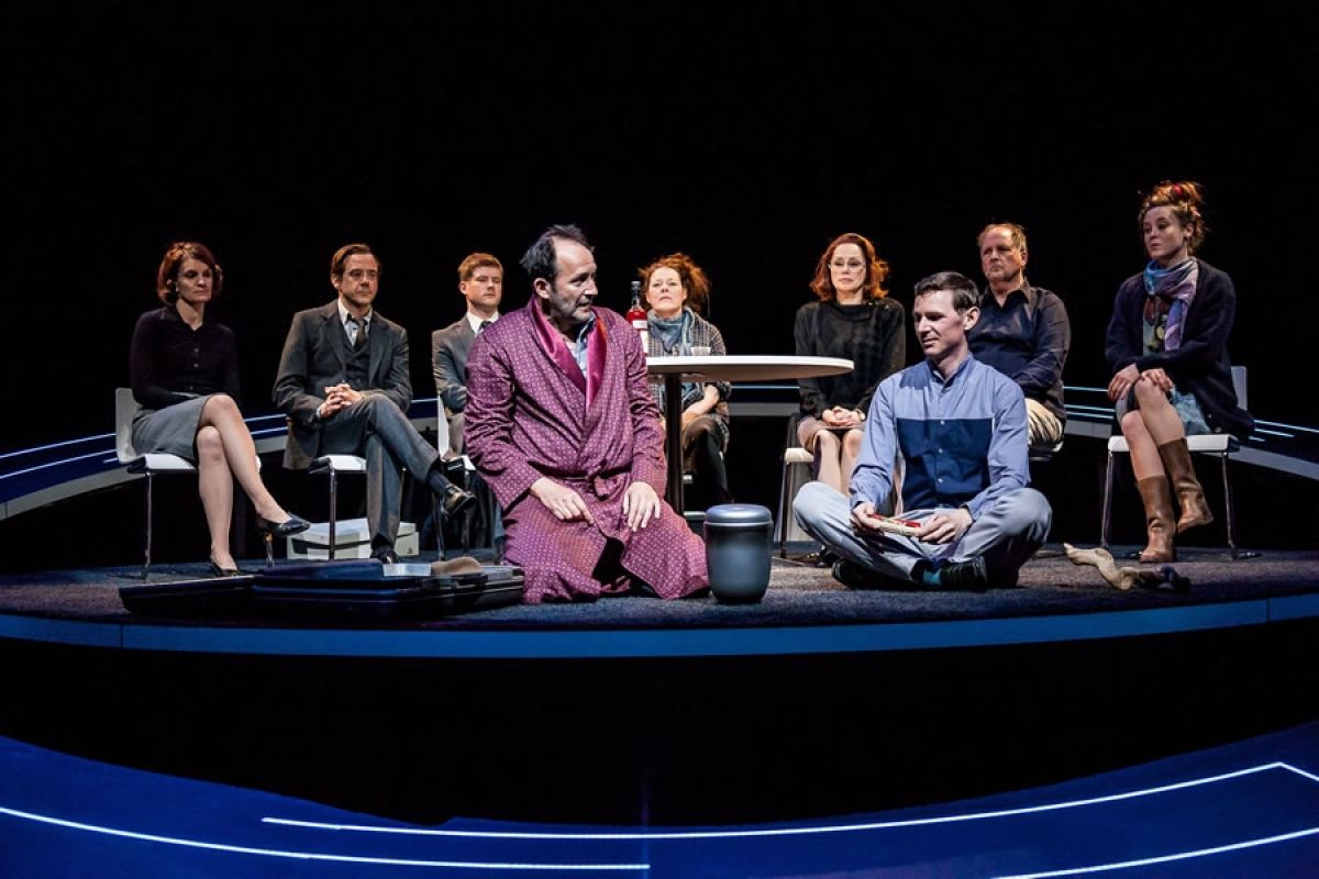 Auf der Bühne stehen Gaby Dey, Florian Eppinger, Angelika Fornell, Benedikt Kauff, Benjamin Kempf, Rebecca Klingenberg, Rahel Weiss, Paul Wenning und Gerd Zinck.